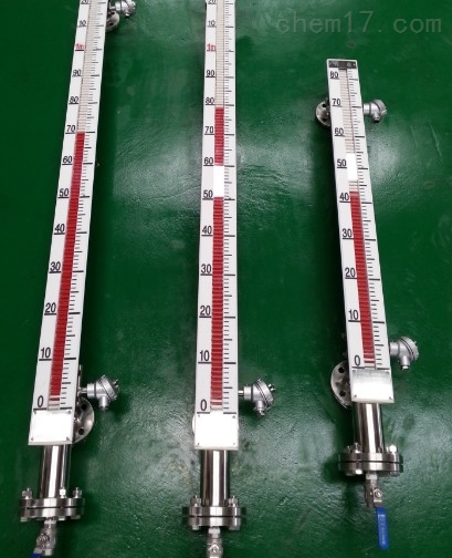 UHZ系列磁翻板液位計是我公司按原化學工業部行業標準HG/T2742-1995《磁性浮子式液位計技術條件》并參照HG/T21284-95《磁性液位計》開發生產的產品。由于其跟液位同步上升的磁浮子通過指示器上的磁翻柱耦合翻轉來顯示液位,顯示器不直接與容器連通,所以可以制成防泄漏、耐高壓、及腐蝕條件下測量的液位計。可靠性好,使用安全、指示醒目、測量范圍寬、安全方便??朔瞬AЧ埽ò澹┦揭何挥嬍芨叩蜏貏∽円灼扑榧澳蛪旱偷娜秉c。