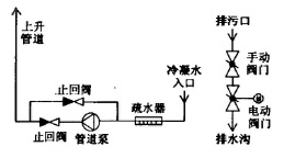 5.1如上圖所示,在原上升管道與疏水器之間增加兩條回路,其中主路由止回閥、管道泵組成。管道泵與換熱器的三暢磁翻板液位計連鎖,根據現場具體運行情況設置高、低液位管道泵自動啟停,磁翻板液位計的數值上傳至廠區指揮中心,實時遠程監控,同時增設管道泵的緊急停止按鈕。旁路僅設置止回閥。在正常情況下,凝結水可以通過旁路的止回閥順利地回收到凝結水回收裝置中;在非正常情況下,則可以憑借管道泵加壓后,順利回收。