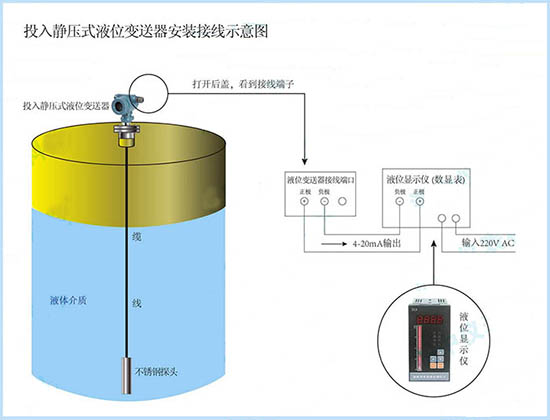 投入式液位變送器以其較高的精度,較低廉的價格及方便的安裝在水位測量中得到廣泛的應用。鍋爐水液位計的好壞對于高精度測量系統有著重要的意義。例如:傳感器內部受潮對傳感器造成嚴重破壞,粘貼的應變計的基底、基底間的粘接層尺寸發生變化,隨之應變計阻值發生變化,傳感器發生零點漂移、 絕緣不良甚至出現傳感器失效現象。實際應用中,因液位計失效引起產品不能正常工作,甚至不能工作的情況時有發生。因此,液位計的性能直接影響系統的準確性和穩定性。