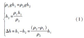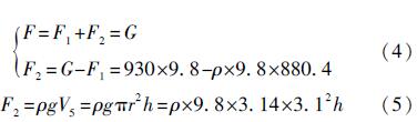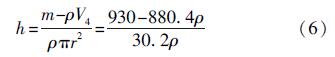 式中:h為直筒底部距離浮球浸在水中時(shí)水面的高度。由于浮球在水中的浮力等于它自身的重力,由此可得: