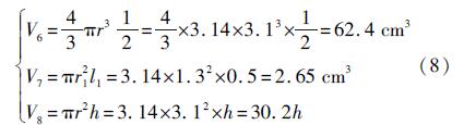 式中:V1、V3為半球的體積;V2為直筒的體積;V4為非線性部分的總體積。