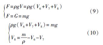 式中:F為浮球的浮力;G為浮球的重力;V5為線性部分浸入水中的體積;h為線性部分浸入水中的高度。