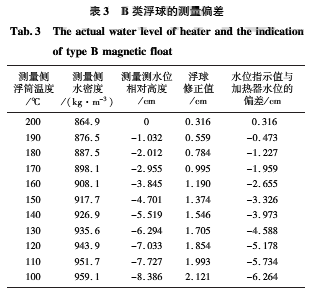 ②測(cè)量筒中的浮球有更多部分浮在水面上,造成測(cè)量值偏高。本文對(duì)不同溫差下的測(cè)量偏差進(jìn)行了詳細(xì)分析,并給出了電站常用的兩類磁浮球的測(cè)量偏差。