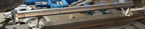 3、焊接法蘭,對主管頂端封頭進行焊接;法蘭和通液管的連接(焊接)并矯正兩法蘭的水平度