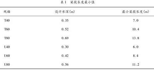 根據《灌溉渠道系統(tǒng)量水規(guī)范》(GB/T 21303 -2007),設置標準斷面的渠段長度,應大于 20 倍*大水深。定型斷面量水渠槽的渠段長度如表 1 所示。