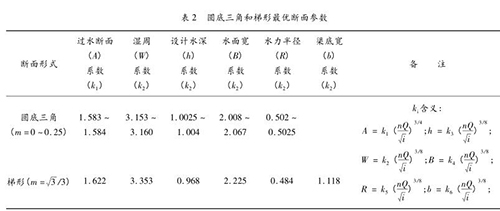 以濕周*小為目標函數,通過常用斷面的非常好的水力參數分析,推薦優(yōu)化、實用的混凝土襯砌輸水明渠橫斷面,確定水力非常好的斗農渠邊坡系數為