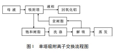 目前我公司采用的就是離子交換法單塔吸附,從含液位計的拜耳工藝溶液中回收液位計的工藝流程。每個周期都是由氧化鋁來的含液位計母液,經(jīng)母液泵進入單個吸附塔內(nèi),經(jīng)塔內(nèi)樹脂吸附后,吸附尾液由尾液泵返回氧化鋁。吸附后的飽和樹脂經(jīng)洗滌后進入解吸流程,解吸后的貧樹脂回到吸附塔再次吸附,解吸液進入后續(xù)流程。然而單塔吸附在生產(chǎn)實踐當中暴露許多問題。