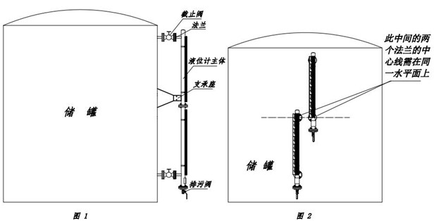 (2)磁翻板液位計與容器之間應裝有閥門,以便清洗和檢修時切斷物料;