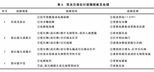 我公司200mj液氨球罐上裝有一臺SK-DTZ5V4-I,DPYY-YO雙法。r_差壓液位計(量程:-62.04^-20.79kPa)、一臺磁翻板液位計和一臺玻璃板式液位計。磁翻板液位計由于其腔體未能定期檢修使磁柱顏色不變,因而無法檢測;另一臺雙法鑄差壓液位計運行穩(wěn)定,但測量值同玻璃板式液位計顯示有誤差。2014年4月儀表人員抽樣比測記錄數(shù)據(jù),見表1所示。