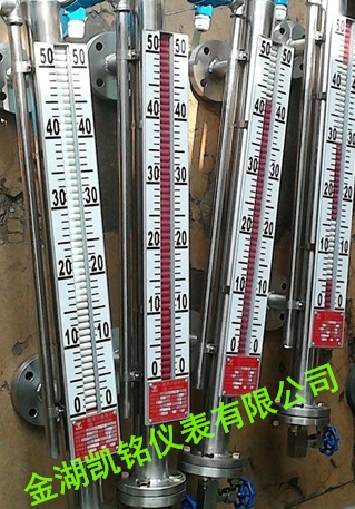 金湖凱銘儀表有限公司生產的磁翻板液位計的*顯著特點是液體介質與指示器完全隔離,所以在任何情況下都非常安全、可靠、耐用,而且各種型號的液位計配上液位報警、控制開關,可實現液位或界位的上、下限越位報警,控制或連鎖;配上靜壓式液位變送器或干簧-電阻式液位變送器,可將液位,界位信號轉換成二線制4-20mADC標準信號,實現遠距離指示、檢測、記錄與控制。適用于腐蝕性介質且工作溫度又較高場合的液位測量,結構可靠,使用壽命長。是硝酸等強腐蝕性介質液位測量的*好選擇。為客戶量身定制,對溫度和壓力要求不高的可以使用本公司的PP材質的液位計。該系列液位計可廣泛適用于電力、石油、化工冶金環保、船舶、建筑、食品等各行業生產過程中的液位測量與控制。