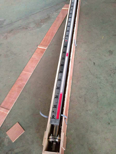 根據浮力原理,浮子在測量管內隨液位的升降而上、下移動,浮子內的永久磁鋼通過耦合作用,驅動紅、白色翻柱翻轉180°,液位上升時翻柱由白色轉為紅色,下降時由紅色轉為白色,從而實現液位指示。